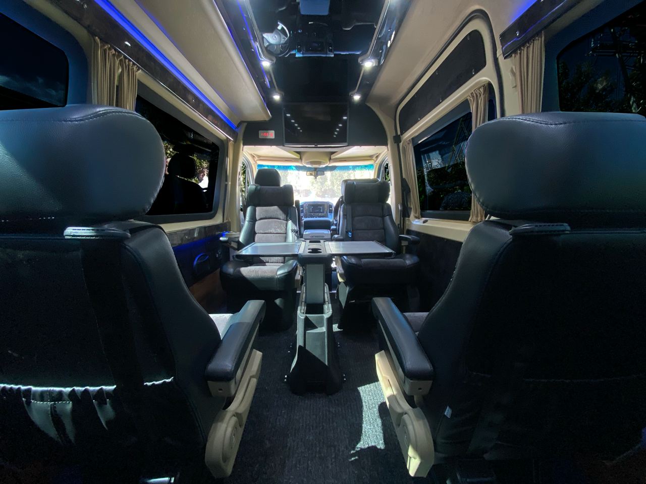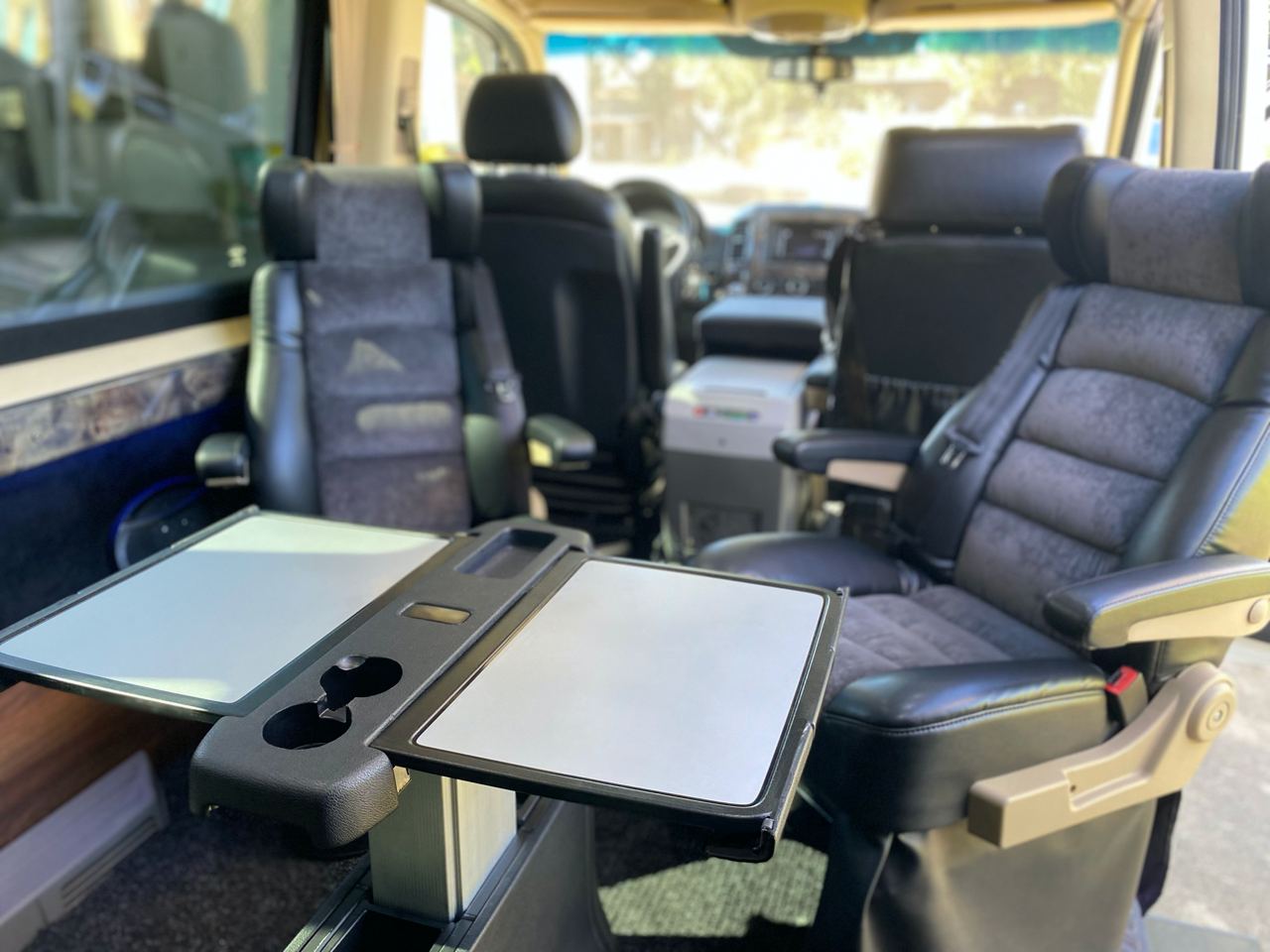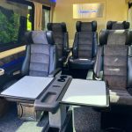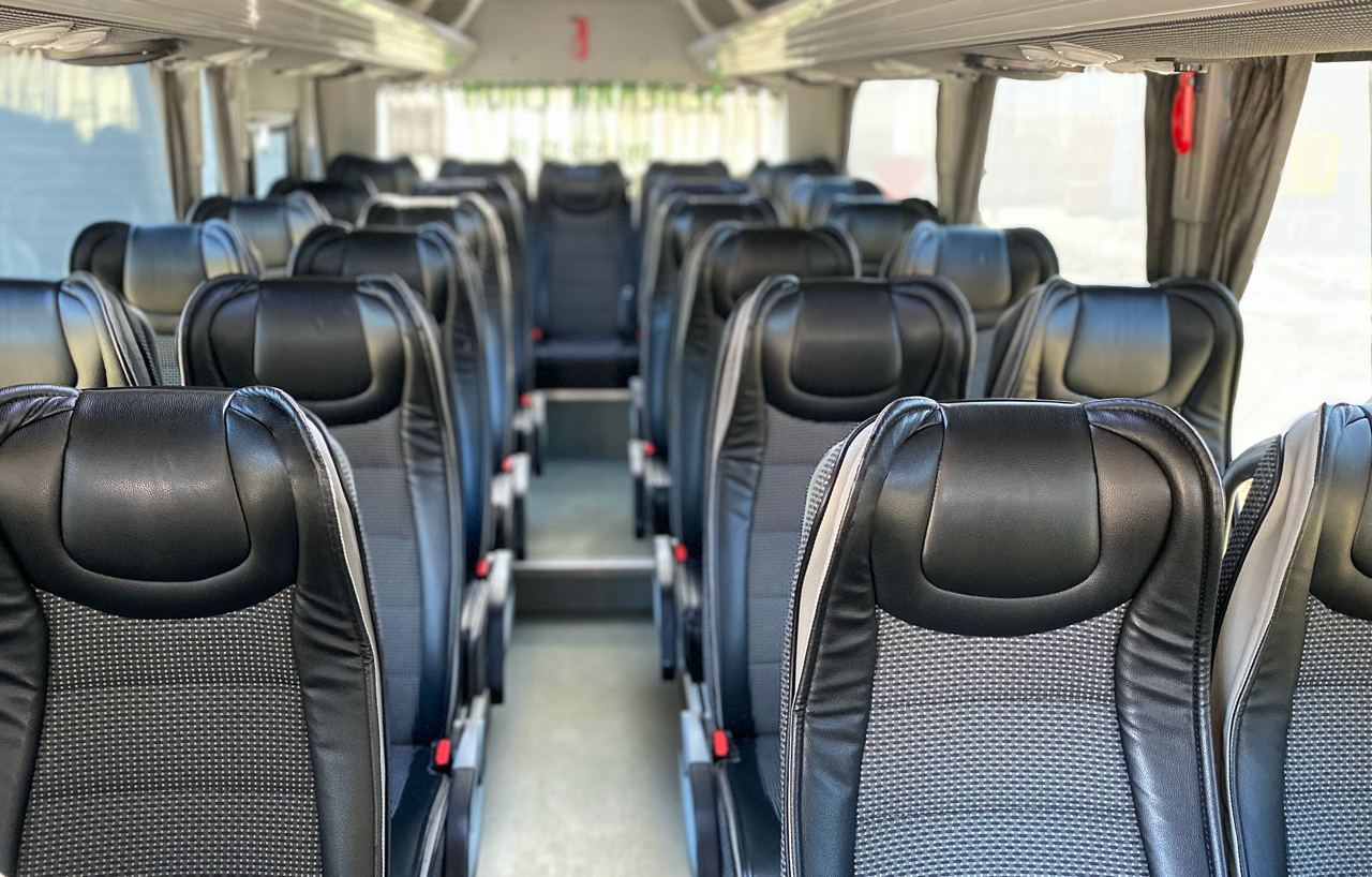 Обладнані ременями безпеки та підголовниками, зручне регулювання положення крісла вперед/ назад і в прохід по салону, достатня кількість простору, що дозволяє зручно розміститися навіть на тривалу подорож, регульовані підлокітники, підставка для ніг, зручна у користуванні верхня панель, місткий багажний відсік.